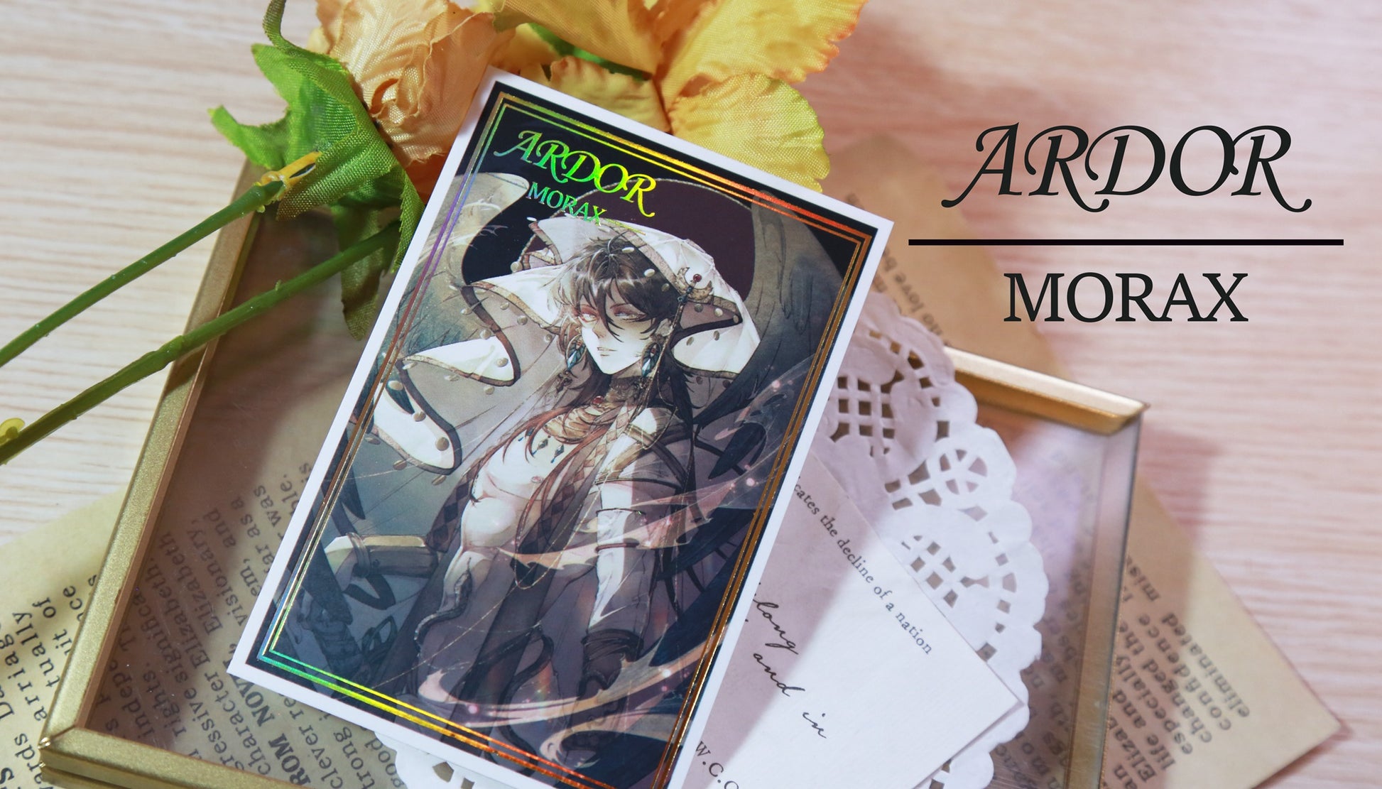 This refined collector's set is inspired by the timeless elegance of Zhongli. Designed with an "archival" aesthetic, the Flaming Ticket and Art Card set utilizes advanced printing techniques to create a piece that feels like a ceremonial artifact from Liyue.